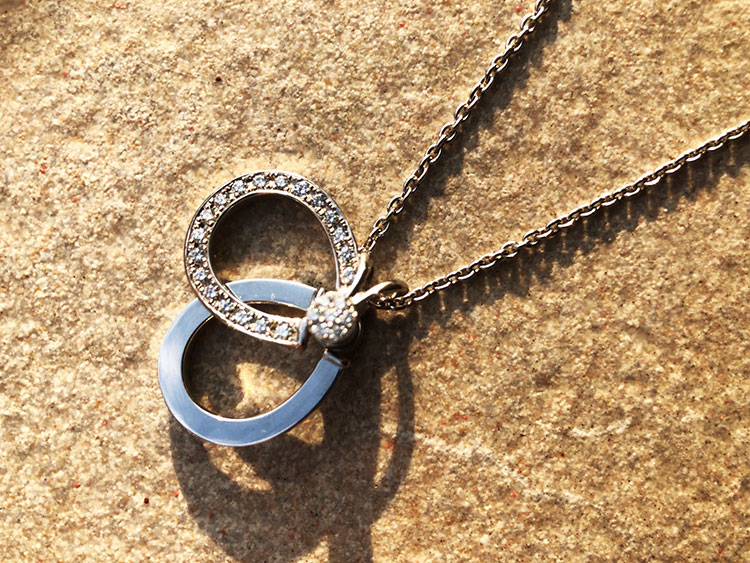 このペンダントのメーカーはウォルサム。実はこのペンダントは二つに分かれるデザイン。なぜ二つなのか。頭文字のWをイメージしたからといっては考えすぎでしょうか?