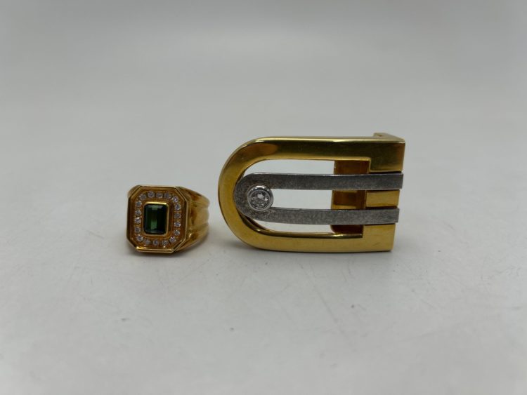 通常、金などの性質(これを金性といいます)を表すK18という刻印が打たれます。しかし、このK18刻印がなく、かわりに750と刻印されているものがあります。この750とは外国の表記であり、18金という意味です。